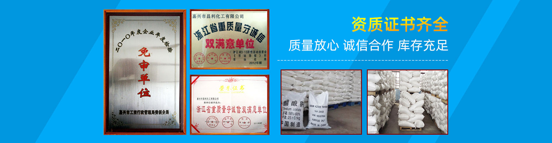 嘉興市昌利化工有限公司——位于中國浙江省嘉興市,主要銷售六偏磷酸鈉、磷酸三鈉、磷酸氫二鈉、磷酸二氫鈉、三聚磷酸鈉、醋酸鈉,還有葡萄糖酸鈉、甲酸鈣、檸檬酸等各類無機化工、有機化工原料。我們的主要銷售對象是印染廠,紡織廠,造紙廠,熱電廠,電鍍廠,混凝土外加劑廠,污水處理廠等。我們公司在江蘇和浙江都有很高的聲譽,現公司因業務需要在浙江省嘉興市和江蘇省蘇州市都設有銷售點,方便更多客商采購。本公司實力雄厚,重合同、守信用、保證產品質量,以多品種經營特色和薄利多銷為原則。